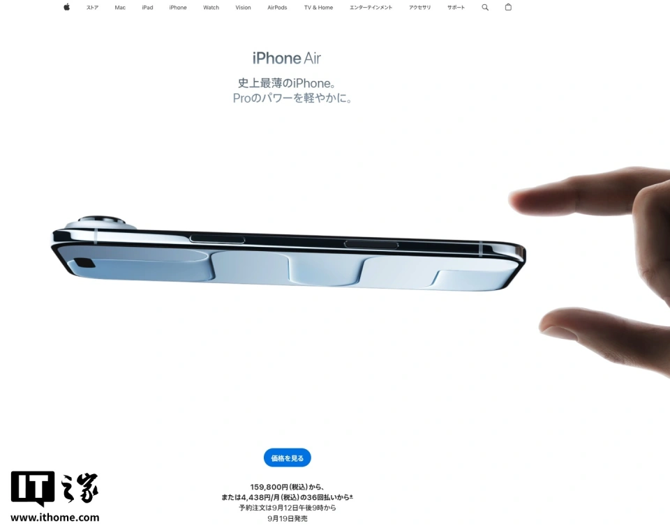 苹果为了展示 iPhone Air 的轻薄设计,在官网的详情页面为新机添加了单手捏合 iPhone Air 的动画效果。但IT之家注意到,该动画并未上线韩国官网。