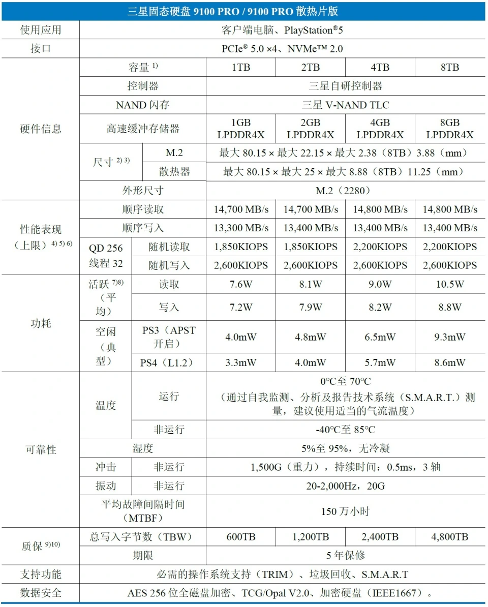 三星9100 PRO 8TB PCIe 5.0 NVMe M.2固态硬盘,性能测试