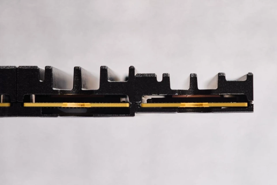 左侧为三星 9100 PRO 8TB 散热片版,右侧为三星 9100 PRO 4TB散热片版。可以明显看出,二者整体厚度存在较大差距。