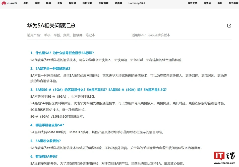 IT之家注意到,华为官网现更新了“5A 相关问题汇总”,针对该技术相关问题进行了详细解答。