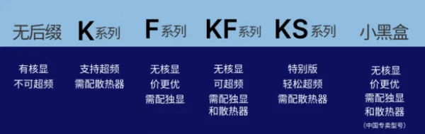 K:可超频版本,需搭配Z系列主板,适合DIY玩家。