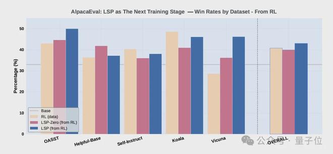 实验显示,经过LSP的进一步训练后,模型的整体胜率从40.9%显著提升到了43.1%。