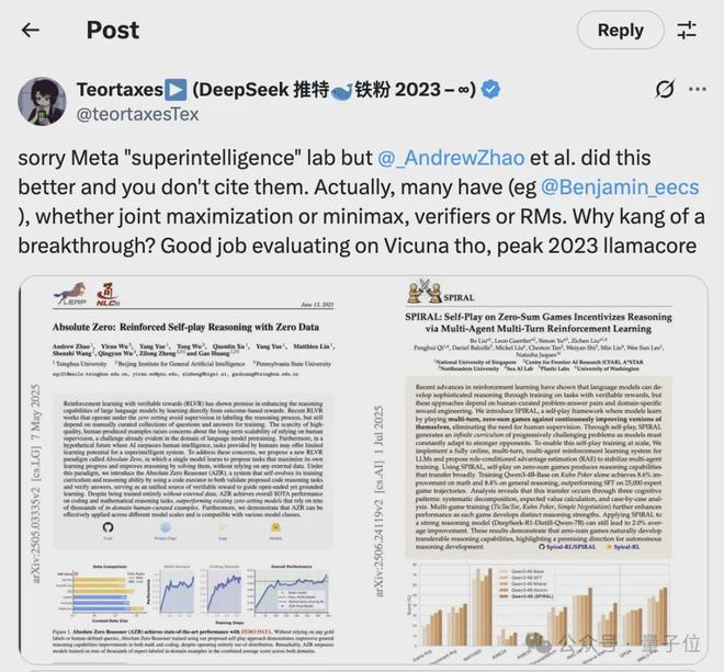 不过,这次不是人事风波,而是他们的第二篇论文《Language Self-Play For Data-Free Training》被质疑忽视前人研究、缺乏创新
