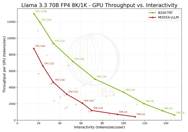 整体上,在Llama 3.3 70B测试中,AMD MI355X在单位成本性能方面确实具备一定吸引力。