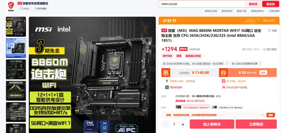 从价格角度看,英特尔(intel)酷睿Ultra5 245KF处理器+微星MAG B860M MORTAR WIFI主板的组合定位中高端市场。处理器盒装价格约1479元,主板价格约1499元,合计约2978元,相比前代i5 14600KF+B760主板组合(约2500元)有所上涨,但考虑到性能提升和功能增强,这一溢价在合理范围内。