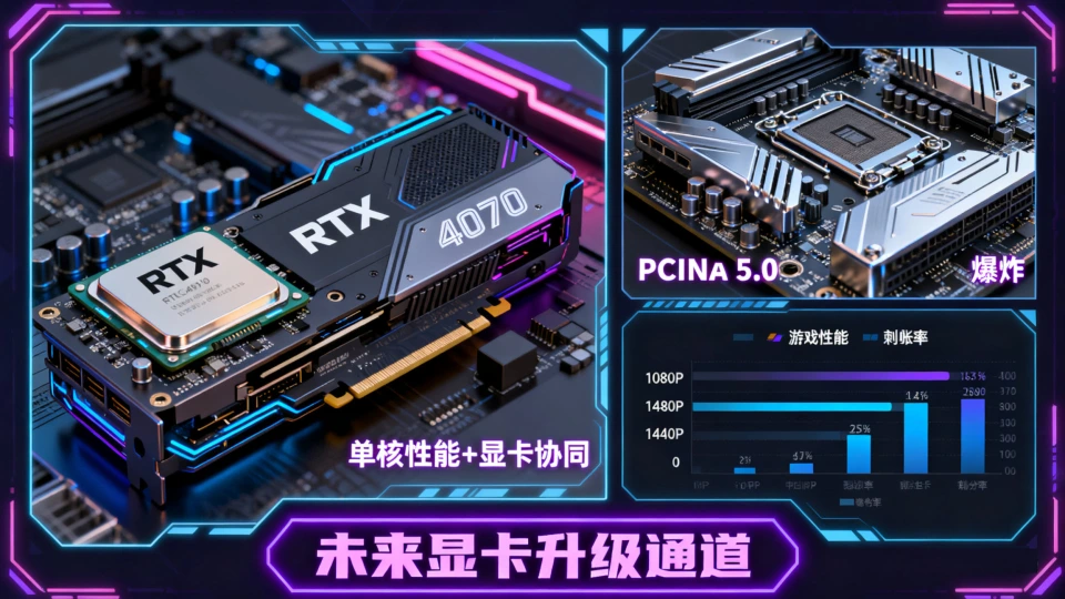 中端游戏玩家。虽然处理器单核性能提升显著,但游戏体验仍需依赖独立显卡。建议搭配RTX 4070或类似级别的显卡,以获得1080p或1440p分辨率下的流畅游戏体验。主板的PCIe 5.0插槽和金属加固设计,为未来升级更高端显卡做好了准备。