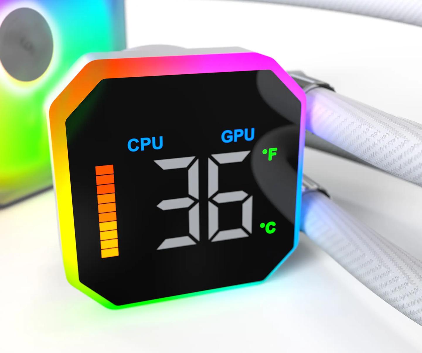 IT之家 9 月 26 日消息,MONTECH 君主科技 22 日宣布推出 HyperFlow Digital 240 / 360 处理器一体式水冷散热器,其在冷头上配备了一块七段式数字显示屏幕,可以摄氏度或华氏度显示 CPU 或 GPU 的实时温度情况。