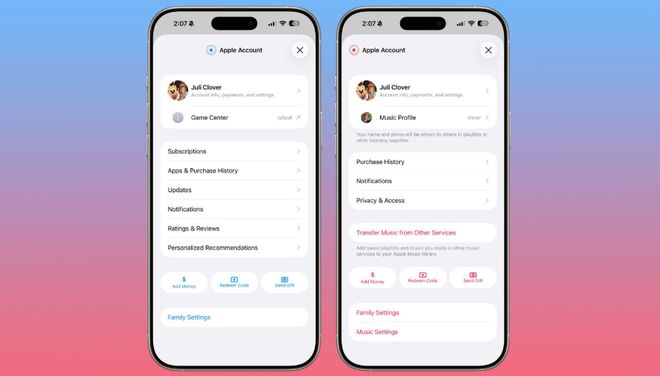 在 App Store、Apple Music 和其他具有用户设置的应用中,将有一个新的统一苹果账户中心,取代了现有的个人资料功能。