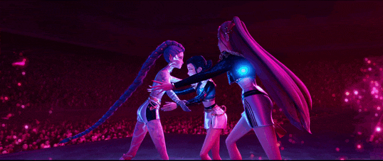 抛开KPOP这个外层标签,《KPOP猎魔女团》的故事设定本质上仍是一套高度类型化的西方奇幻叙事:世界面临威胁,主角拥有秘密身份,通过团队协作与自我接纳完成成长。只是这一次,拯救世界的方式被换成了女团与舞台。
