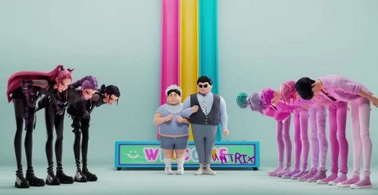 同时,大量让KPOP相关的文化符号被自然植入,打歌节目、应援文化、偶像登上Met Gala、90度鞠躬的礼仪、澡堂与韩食、舞蹈challenge……持续制造亲近感,能让受众在观影的过程中会心一笑。