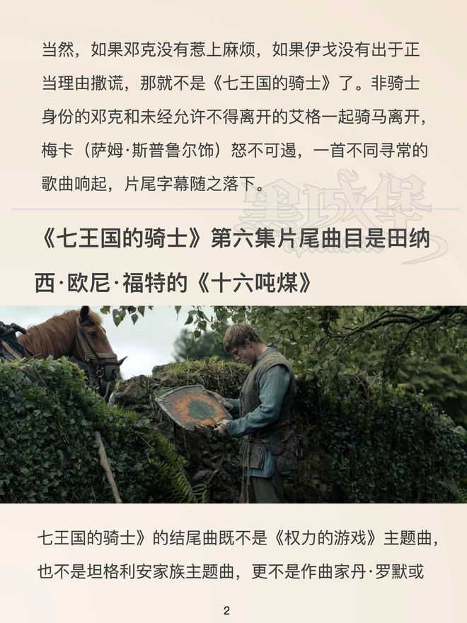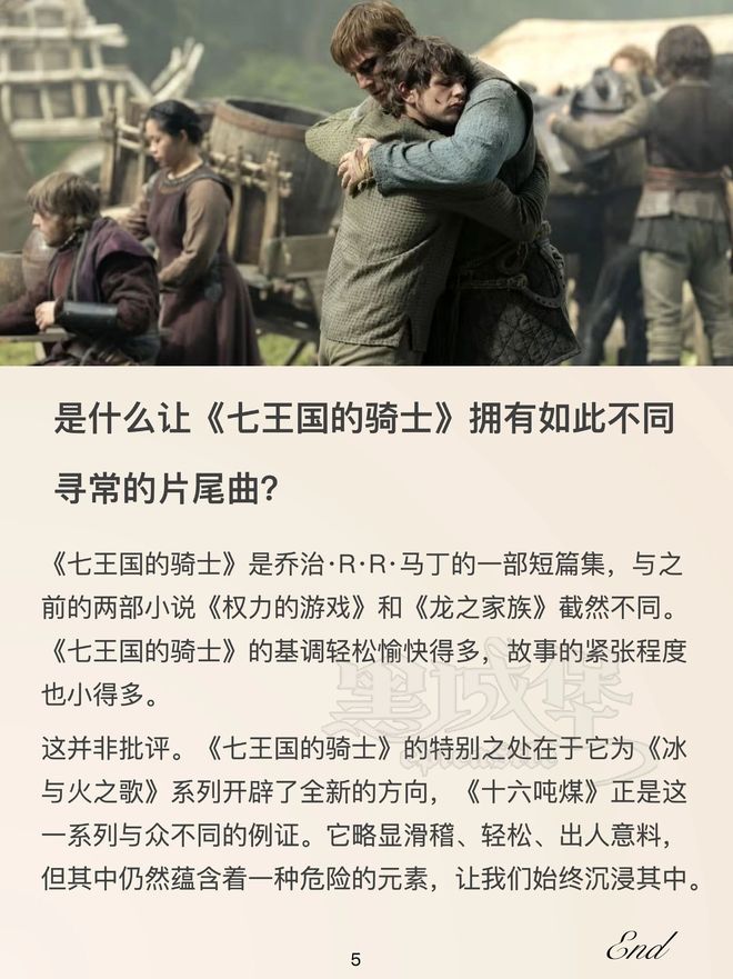 作为黑暗史诗《权力的游戏》前传的《七王国的骑士》为何拥有如此跳脱的片尾曲?