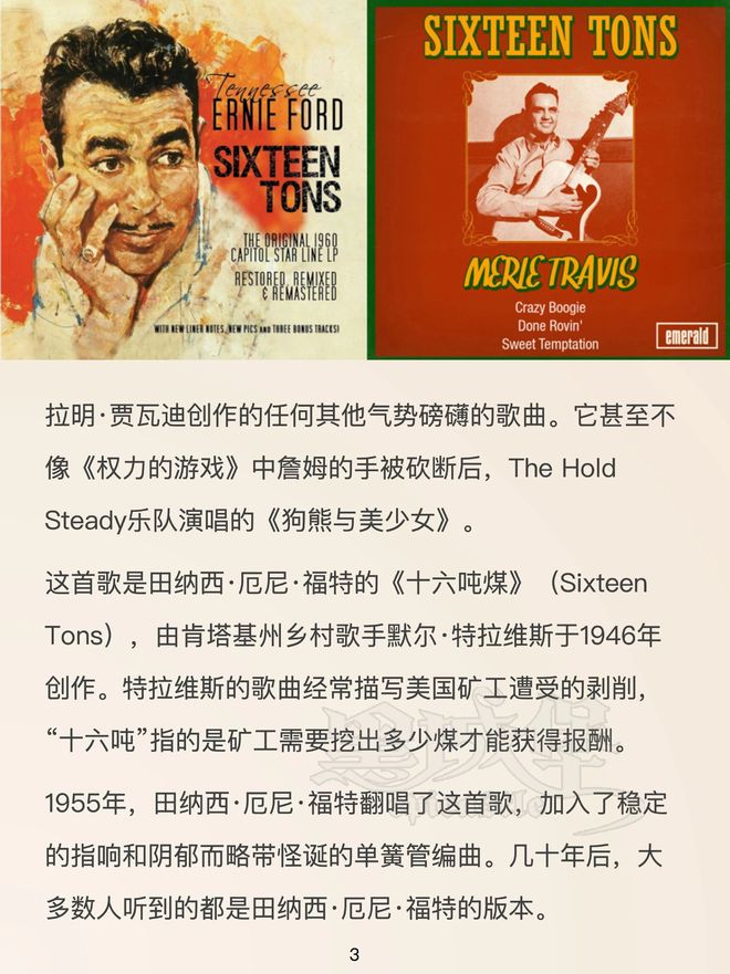 不过一个架空奇幻版中世纪的故事片尾曲为什么是美国1950年代描绘矿工生活的乡村歌曲《Sixteen Tons》?我反而觉得还挺契合作品风格的这个片子比起《权游》《龙之家族》这些正传,多少都有些轻松恶搞风格,也就有了更广泛的选曲空间。