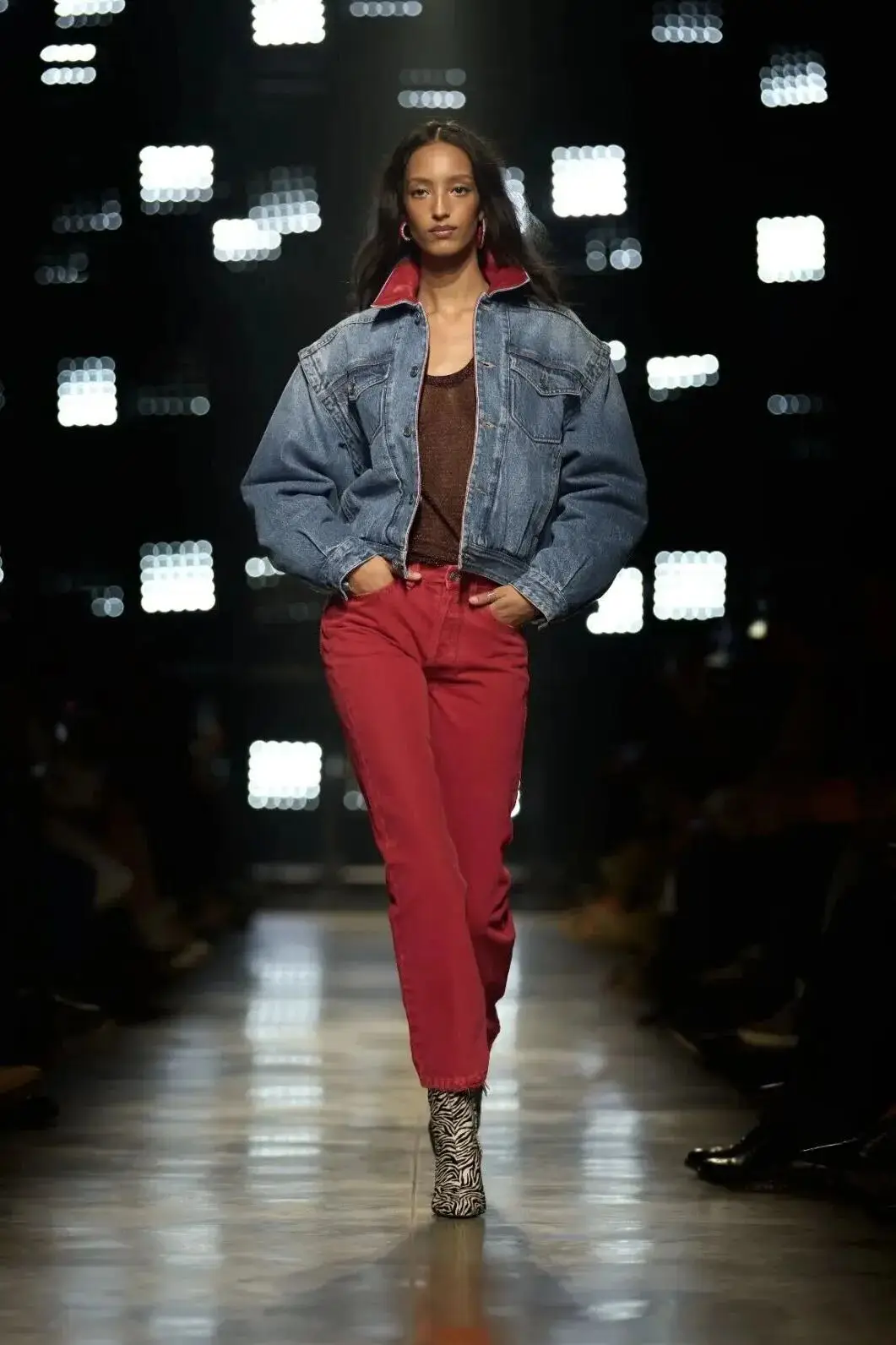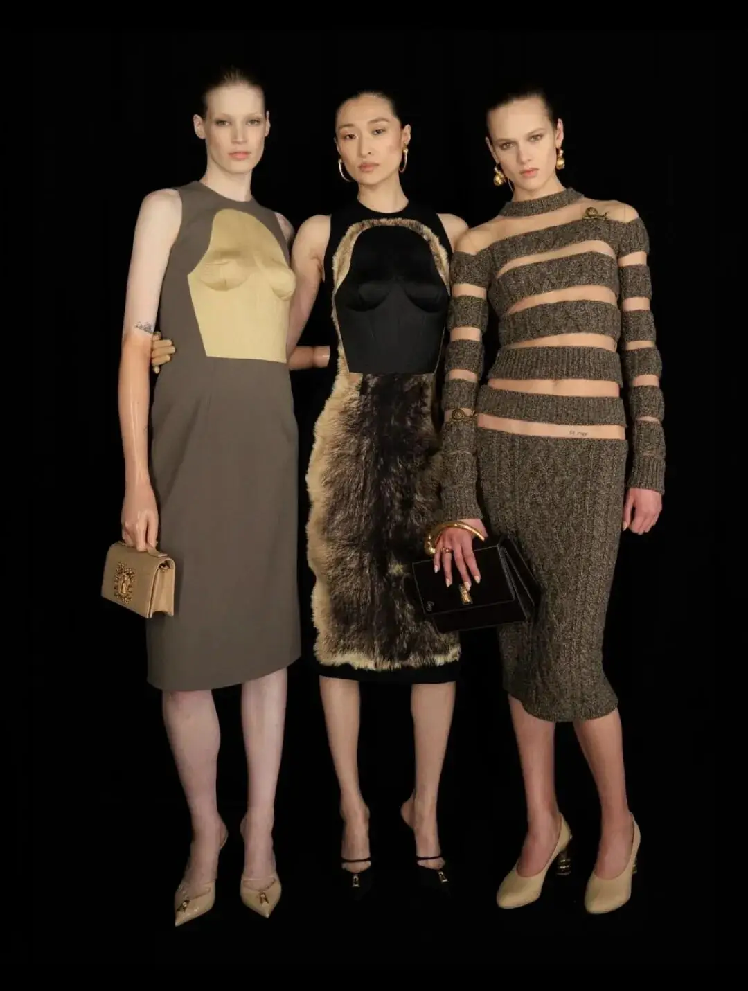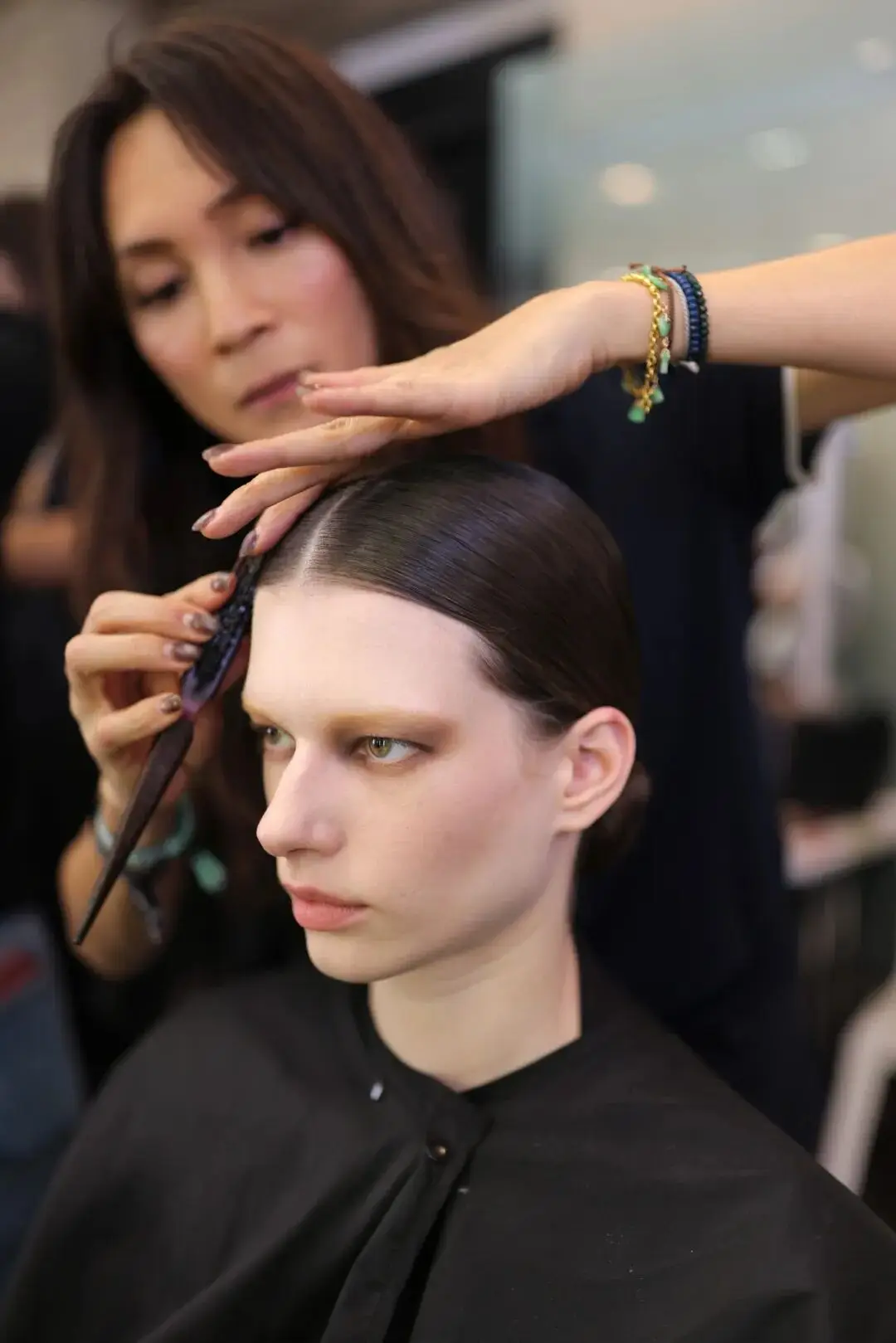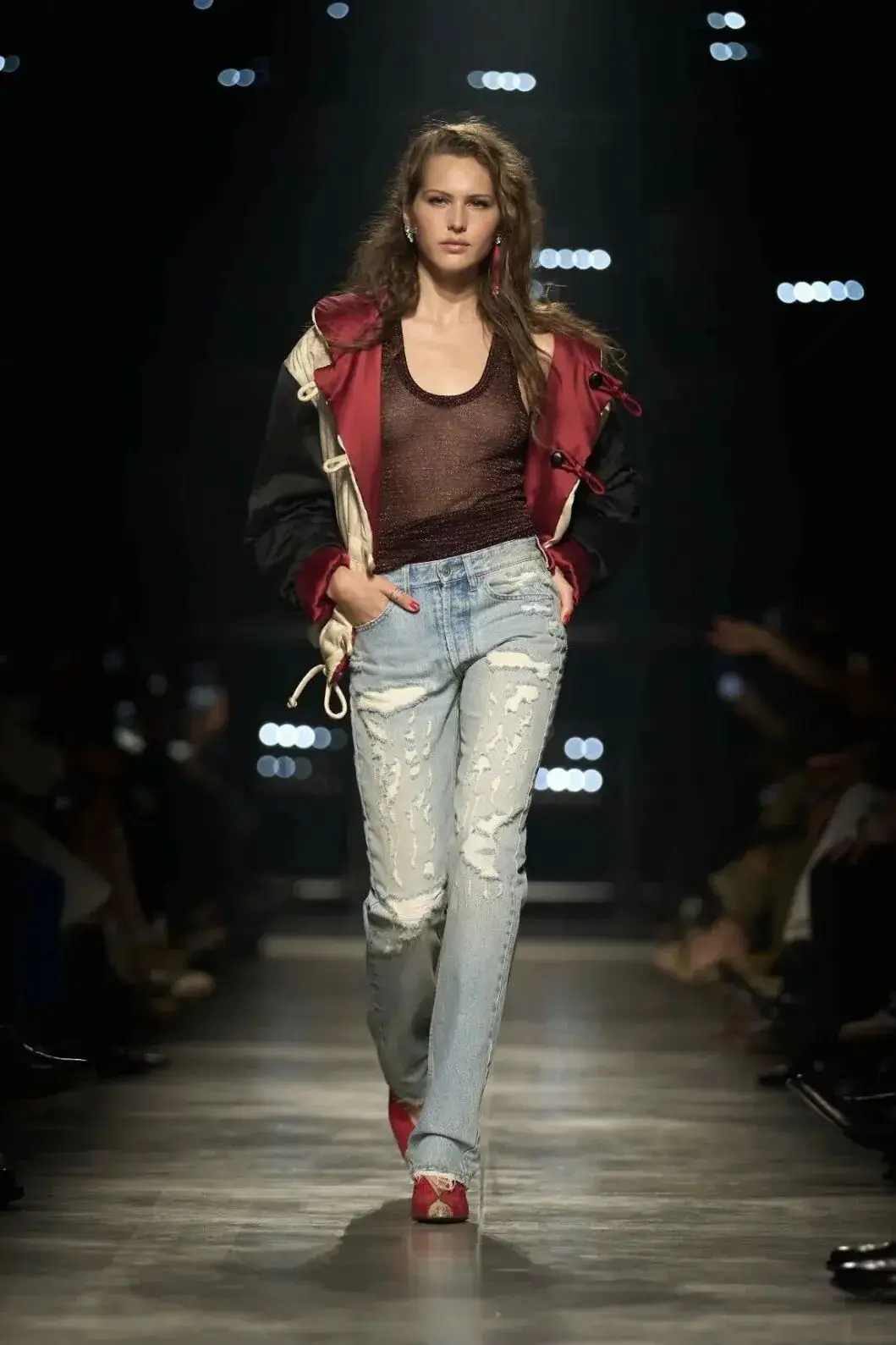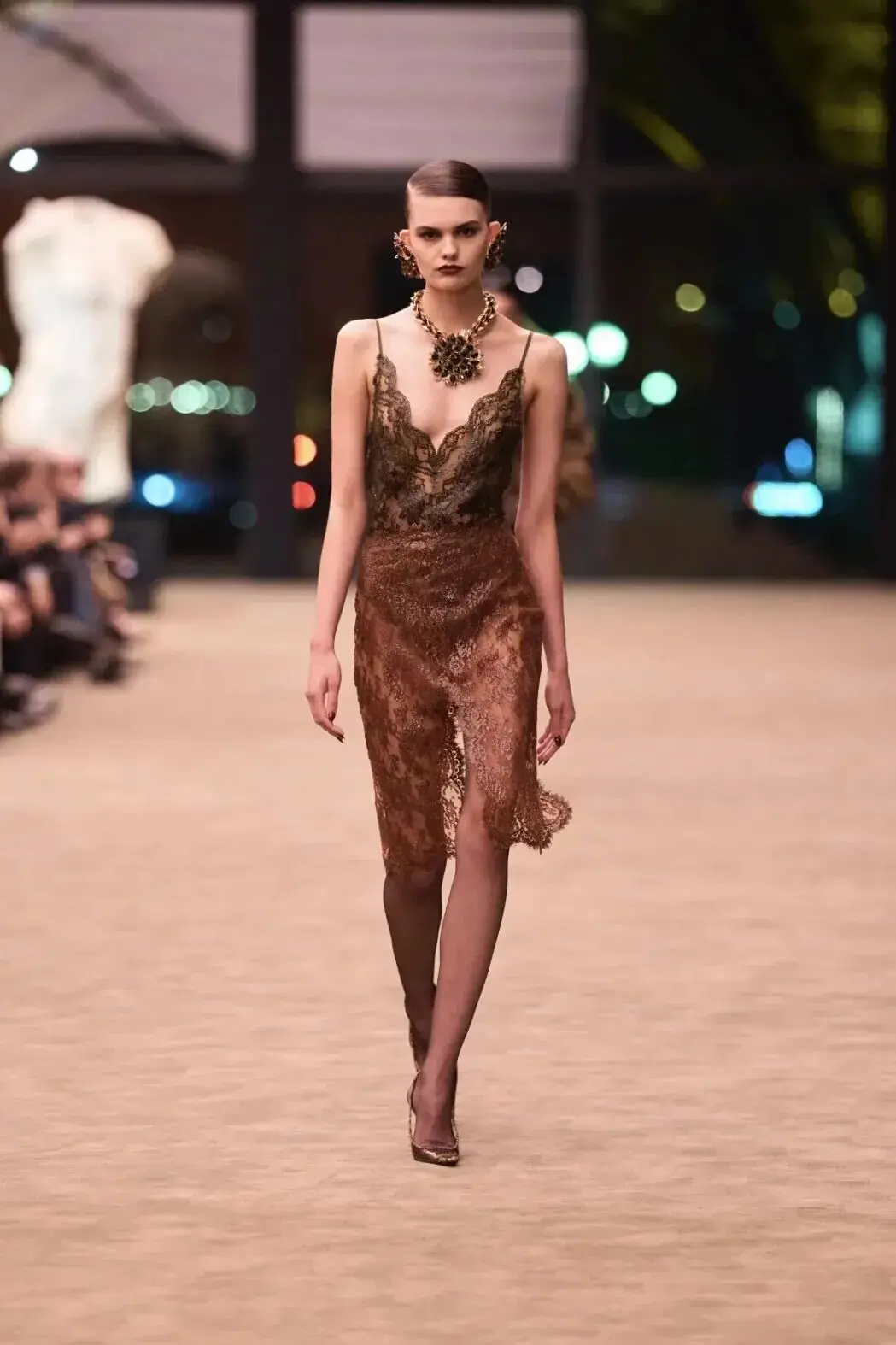 这也是Vaccarello最擅长的叙事方式:Vaccarello本季的灵感来自法国演员Romy Schneider在1971年电影《Max et les Ferrailleurs》中的形象,模特以极其明确的Saint Laurent女性形象登场:侧分发线、湿发质感的低发髻、深色唇妆和烟熏眼影。因此整场秀呈现出一种介于优雅与脆弱之间的情绪张力。