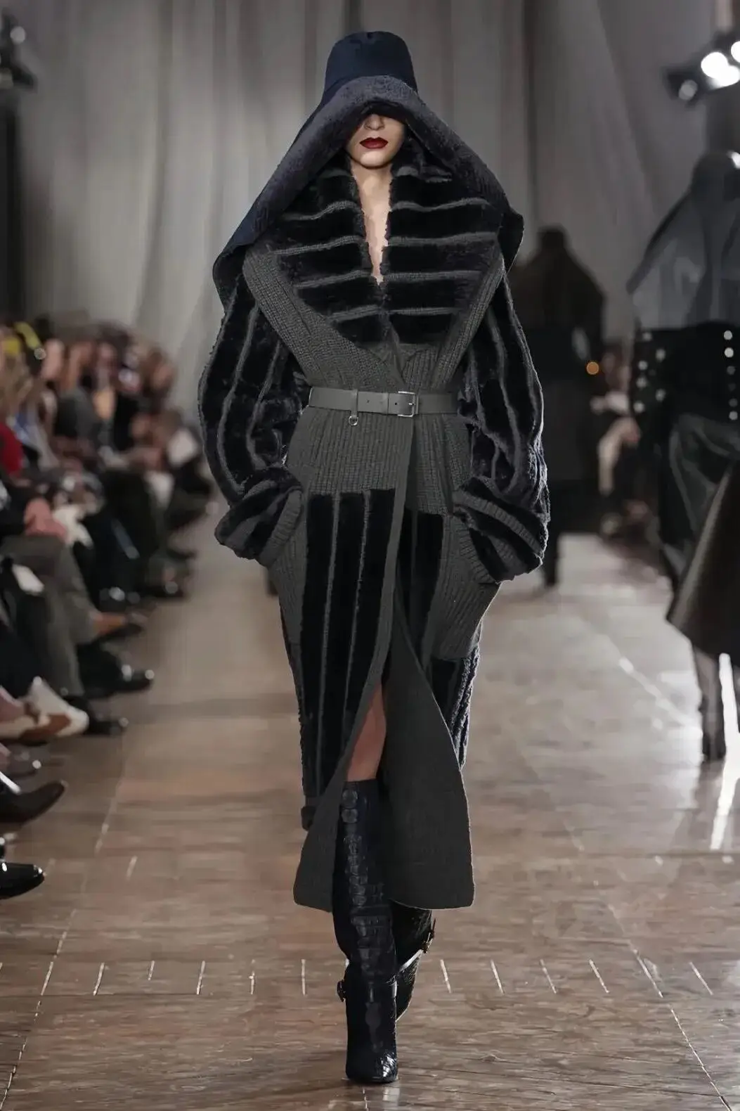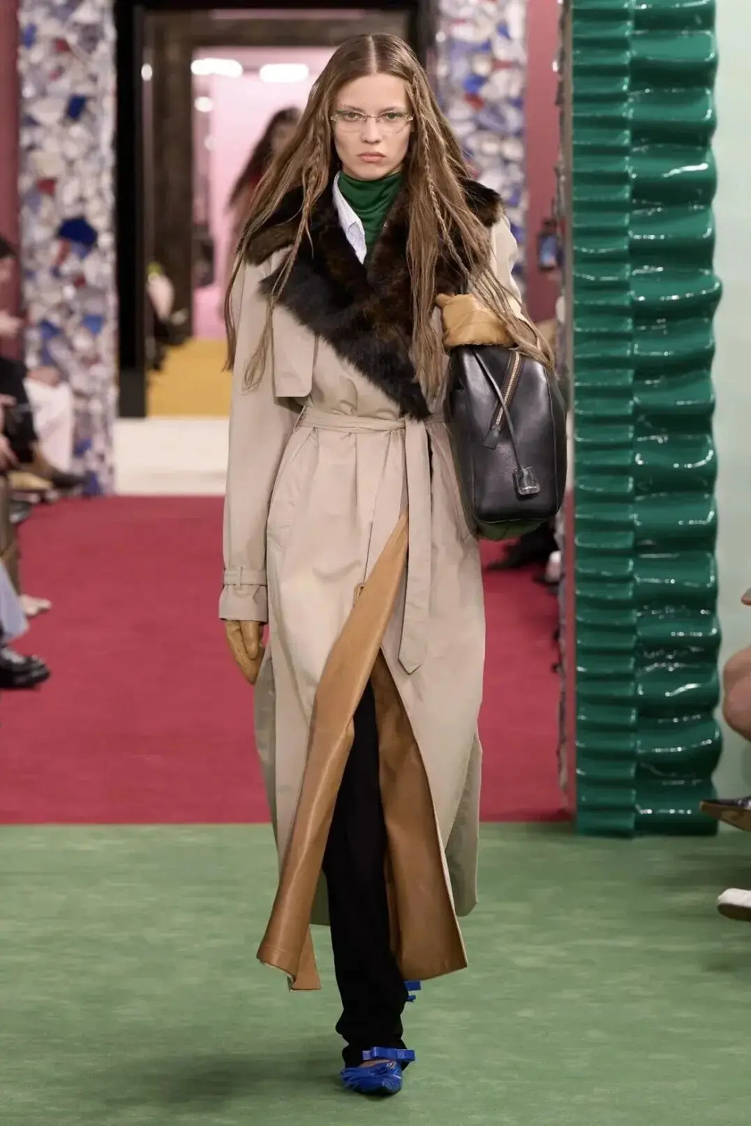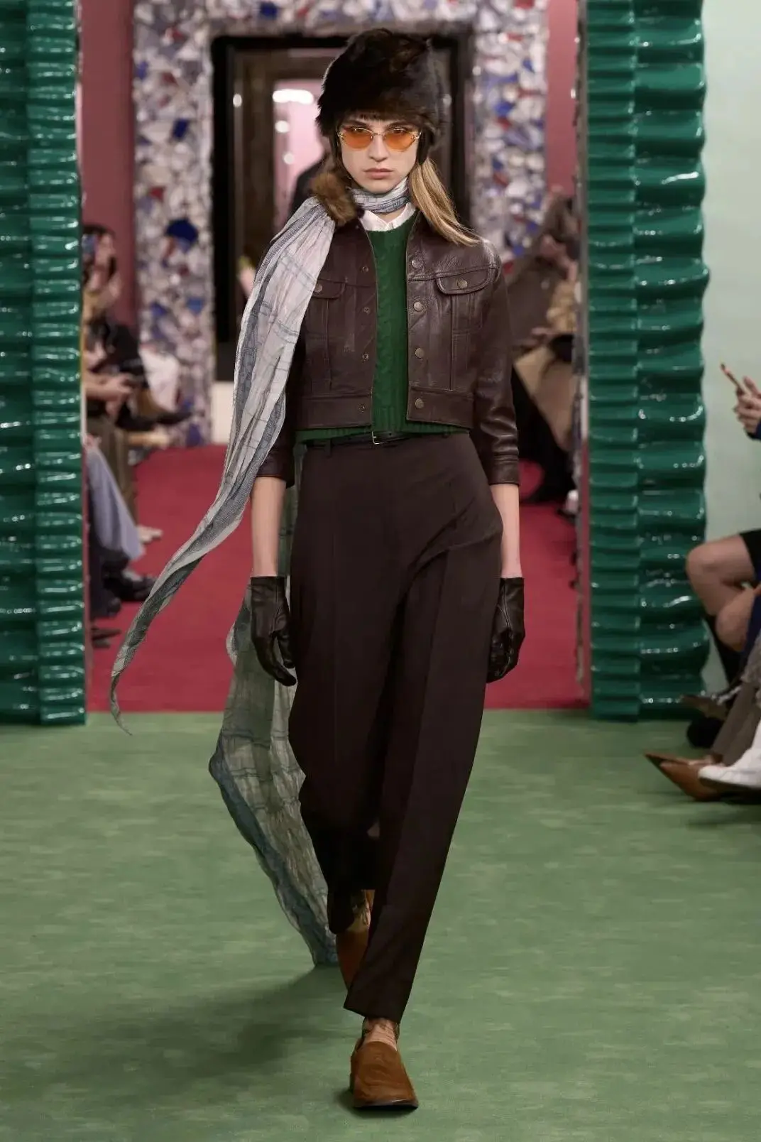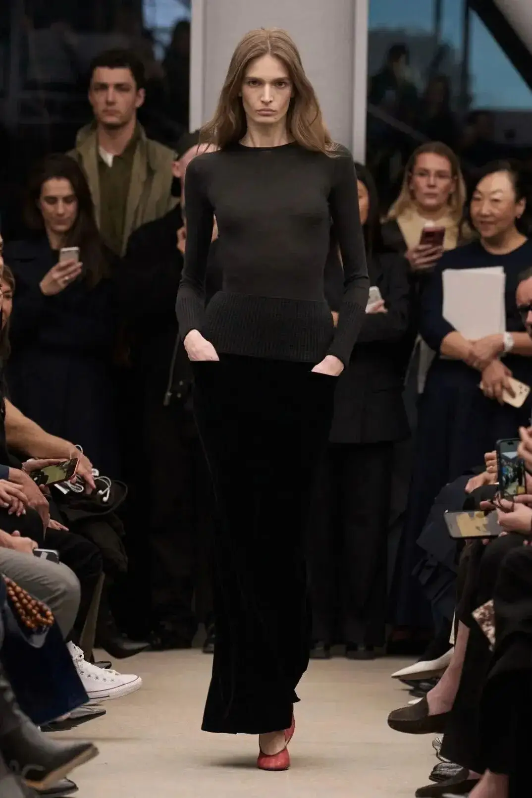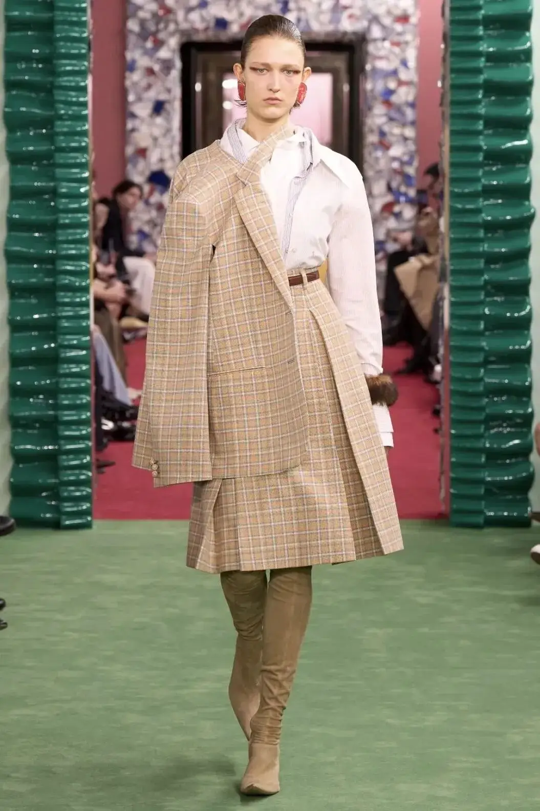 恰逢Lanvin男装诞生百年,Copping亦将男装结构引入女装语言。羊毛、法兰绒与麦尔登呢塑造出挺括的外套与西装轮廓,而衬衫与礼服则通过褶裥、省道与抽褶重新贴合身体曲线,在刚毅与柔美之间建立新的节奏。品牌经典的robe de style 廓形亦被重新唤醒——体量感裙摆在羊毛与真丝之间展开,随着步伐轻轻摆动,既保留历史比例,也显得更加轻松而现代。