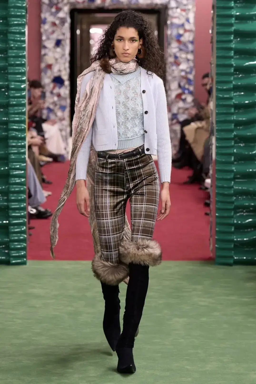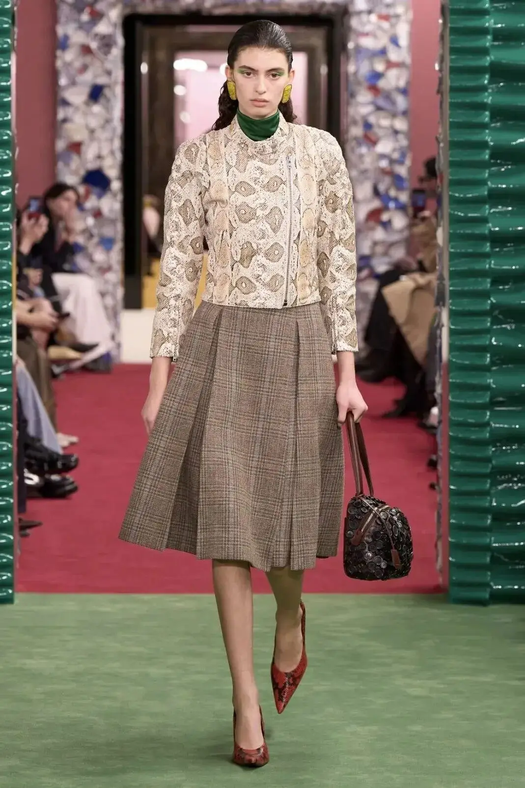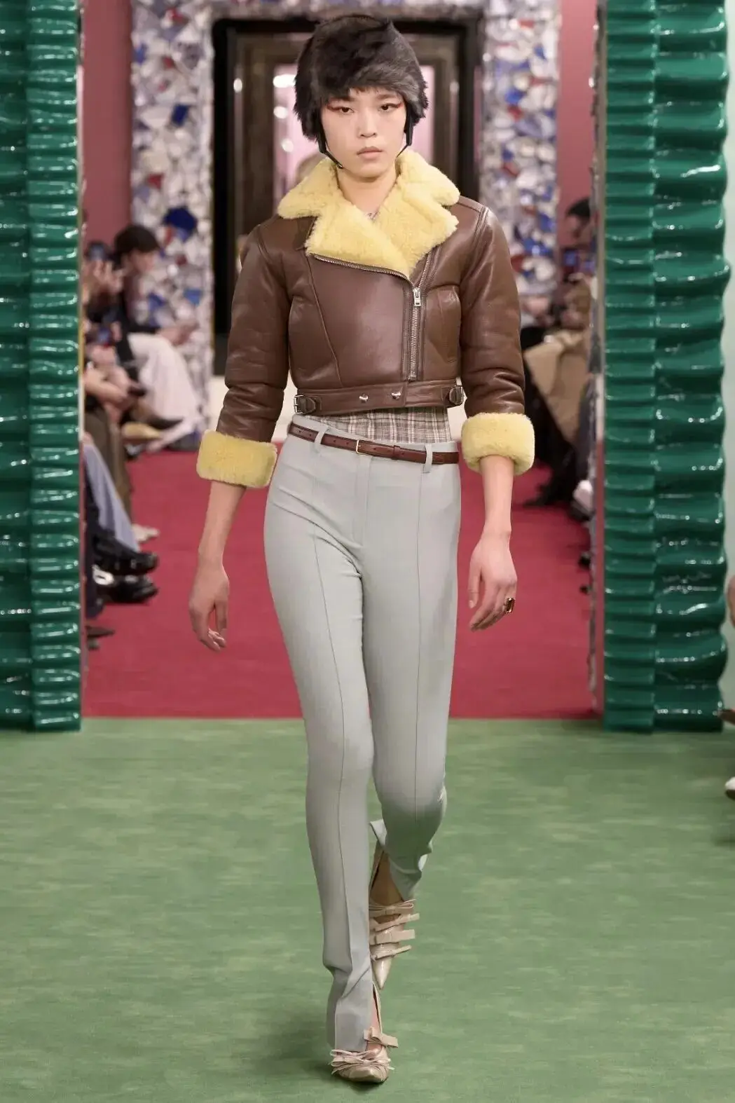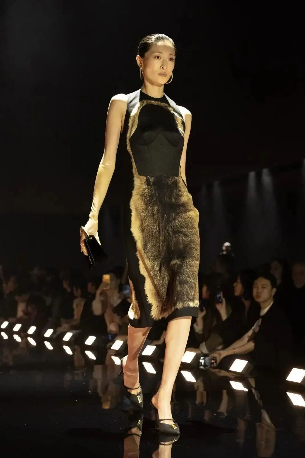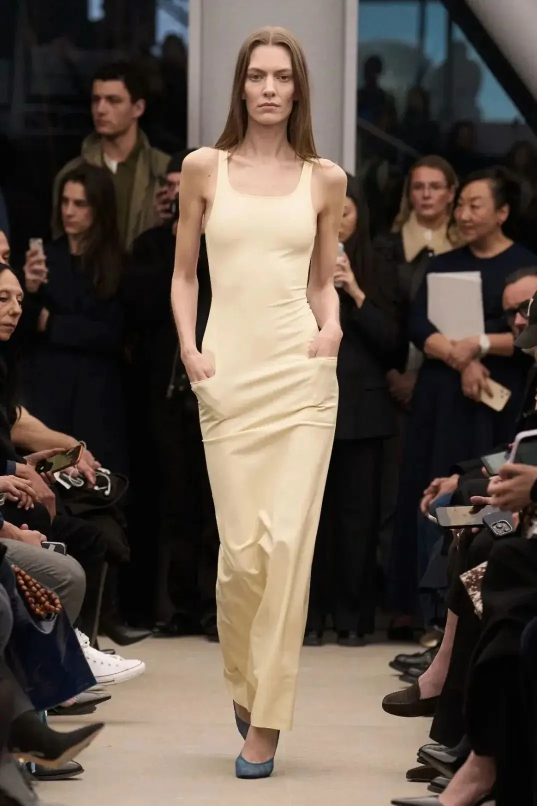 恰逢Lanvin男装诞生百年,Copping亦将男装结构引入女装语言。羊毛、法兰绒与麦尔登呢塑造出挺括的外套与西装轮廓,而衬衫与礼服则通过褶裥、省道与抽褶重新贴合身体曲线,在刚毅与柔美之间建立新的节奏。品牌经典的robe de style 廓形亦被重新唤醒——体量感裙摆在羊毛与真丝之间展开,随着步伐轻轻摆动,既保留历史比例,也显得更加轻松而现代。