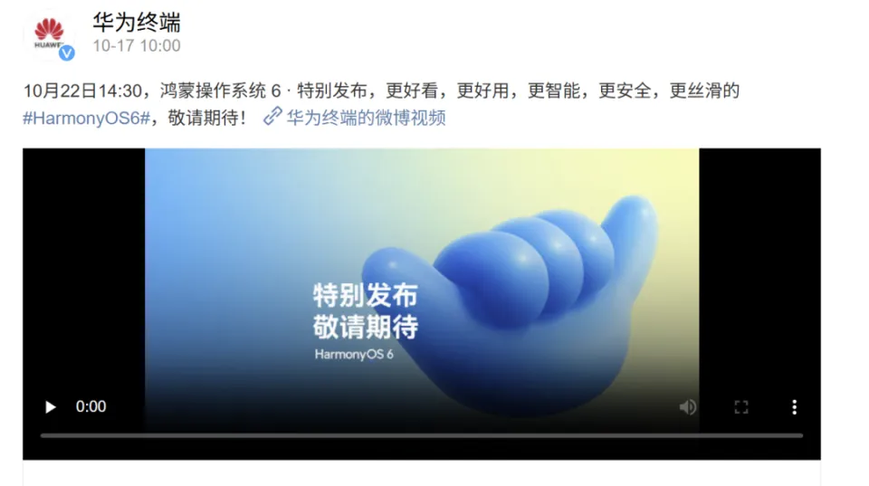 根据华为官方消息,正式版的鸿蒙 6.0 将于 10 月 22 日发布。