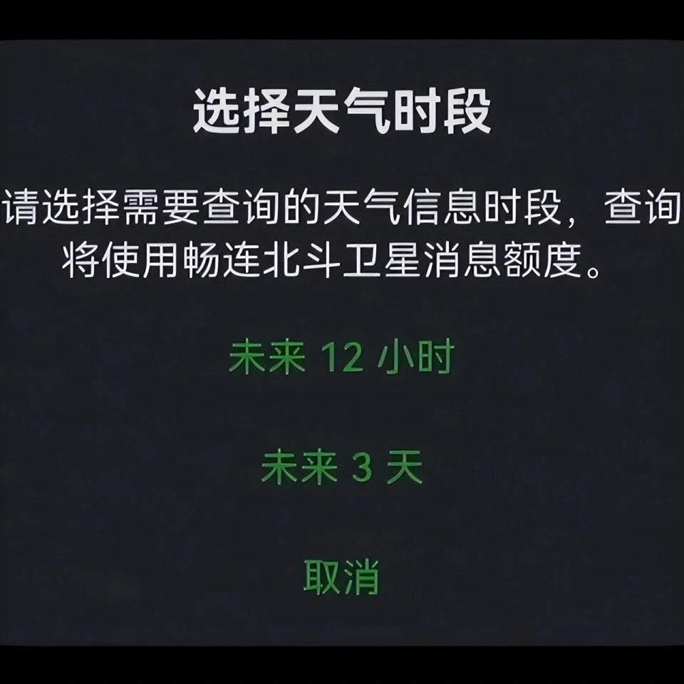 而这次鸿蒙让它实现了“日常化转身”——在没有信号的地方,用户可以通过畅连应用发送卫星消息就能获取当地天气数据。
