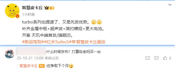 REDMI Turbo 5的提前发布被业界视为小米抢占中端市场先机的关键举措。天玑850芯片的首发权将为REDMI带来约2-3个月独占期,而竞品如荣耀、realme等同芯片机型预计需至2026年第一季度才能上市。这一时间差有望帮助REDMI在年末销售旺季占据主动。
