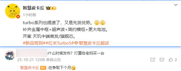 曝REDMI Turbo 5系列有望下月发布!首发天玑中端芯