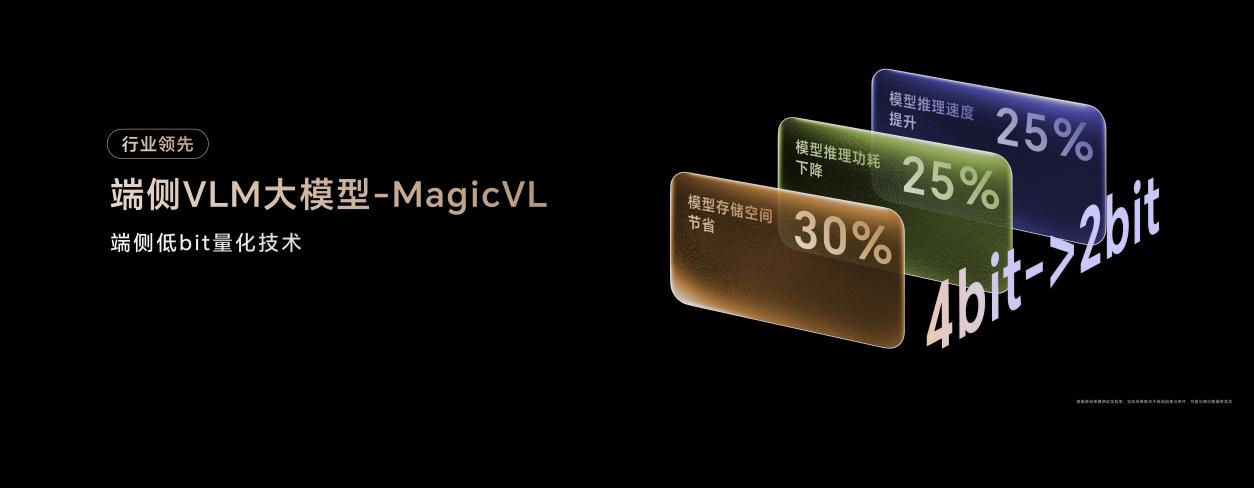 另一方面,自进化能力背后是荣耀在底层技术的坚实投入。荣耀魔法大模型 3.0 构建云侧与端侧协同大模型矩阵,多模态理解、任务规划等核心能力达业界顶尖。同时,荣耀与高通联合研发,通过低 bit 量化(模型存储省 30%、推理速度提 25%、功耗降 25%)与新一代向量化检索技术(检索性能提 400%)等技术,在荣耀 Magic8 系列实现端侧 AI 高效部署。这不仅让“毫秒级图像风格迁移”等体验成为可能,更解决“云端 AI 延迟高、隐私风险大”的行业痛点,让 AI 服务高效又安全。