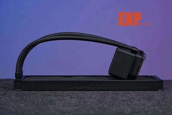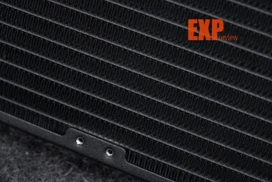 冷排部分还是采用钛钽经典的加厚设计,整体尺寸为397×119.2×29.2mm,更厚的冷排可以增加水冷蓄液量,提升水冷的散热性能;冷排上的鳍片也做了加密处理,扩大热交换面积。水冷的两条冷管长度约400mm,属于常规的长度,能够满足各种大型机箱的冷管长度需求,冷管采用EPDM编织网管,柔韧性和耐用性都很不错,方便用户以自己喜好的方式安装水冷。