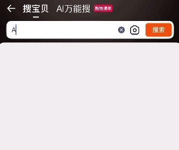 咱最先测的是 AI 万能搜,它也是功能最全,最好找的一个,就在平常 “ 搜宝贝 ” 的隔壁。