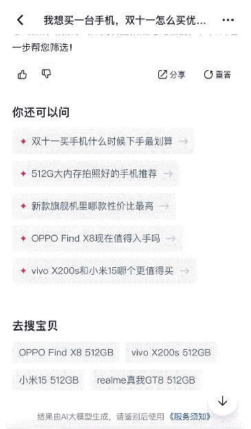 另外,以前货比三家全靠眼力,现在有了 AI,能帮大伙儿在双 11 免做选品攻略,好东西一步到位。
