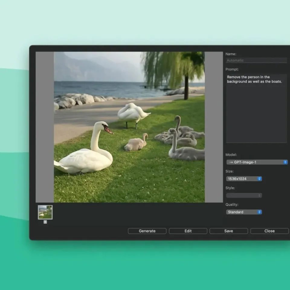 而在图像编辑和生成上,同样也可以通过 AI 提示词的方式进行调整,你可以选择合适的图像模型,通过提示词不断调整细化最终生成一个自己希望看到的画面,同样用在编辑图像上,你可以让 AI 移除画面中一些物体,或者创建一些人物放置到画面中某个场景内等等。