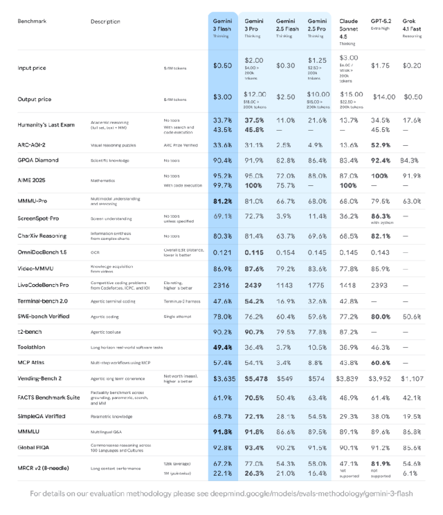 Gemini 3 Flash 在各项顶级基准测试中均展现出超高智能 | 图源:谷歌官网