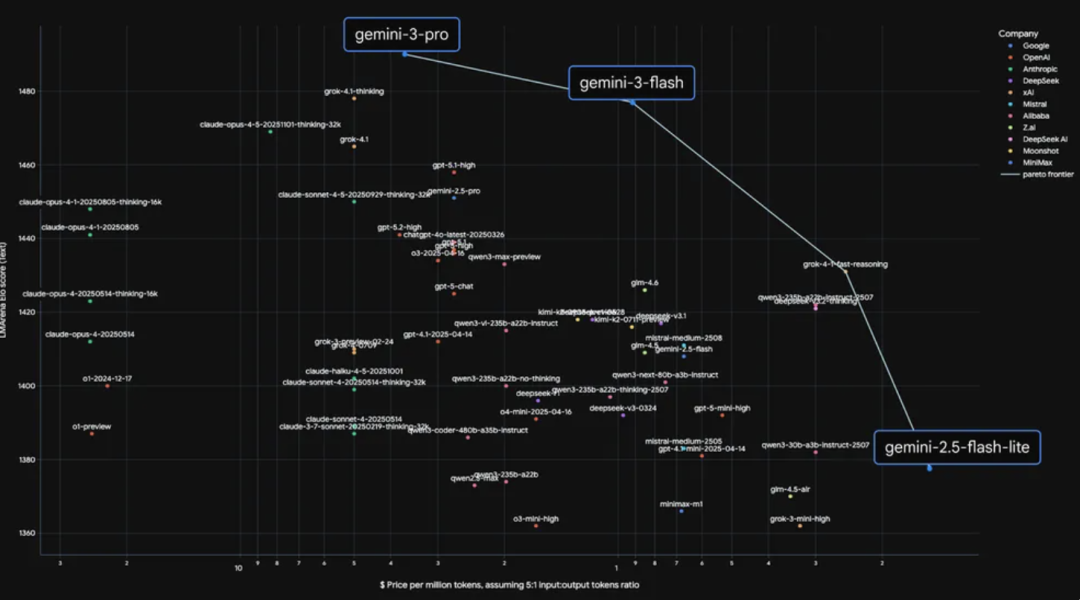 Gemini 3 Flash 在性能、成本和速度方面突破了帕累托极限 | 图源:谷歌官网