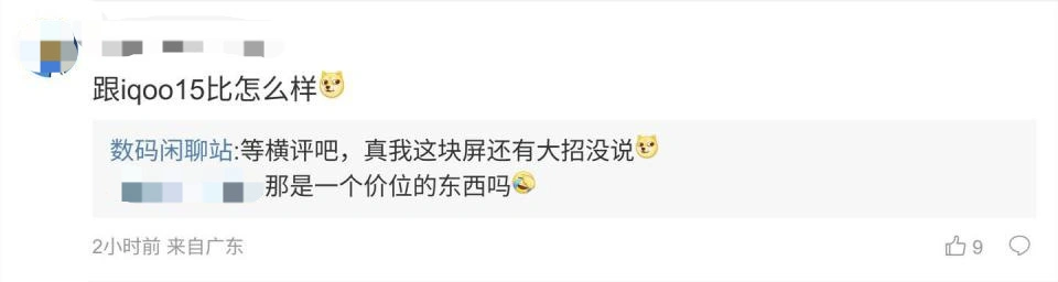 在该条微博的评论区与网友互动时,真我网友提出的“之前说过小米不用三星屏,那是不是红米可以用三星屏”问题,该博主回复道:“没有,粮厂系暂时只采购了国产屏,没有开三星屏的计划”;针对网友提出的“跟iqoo15比怎么样”的问题,该博主则回复道:“等横评吧,真我这块屏还有大招没说”。结合博主文中暗示以及评论区猜测,预计该机来自真我Neo8系列。
