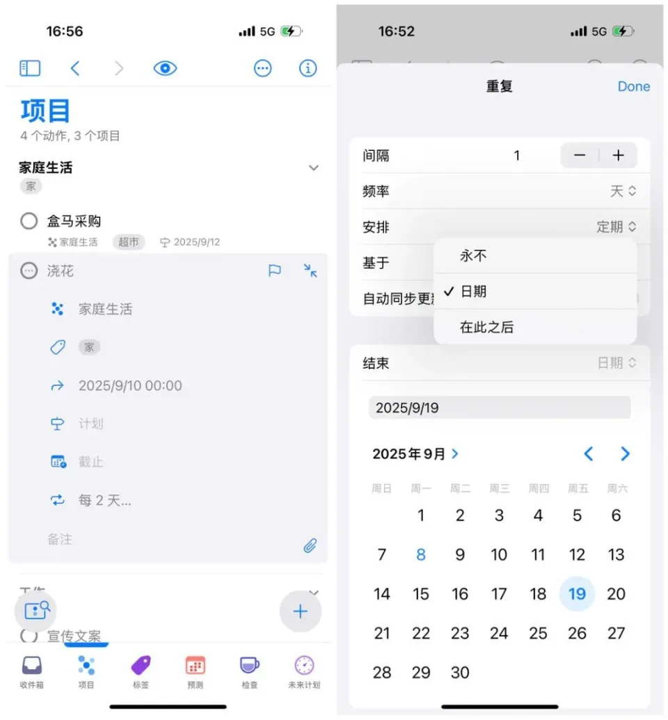 ▍OmniFocus 4.7:新增计划日期,重复功能优化