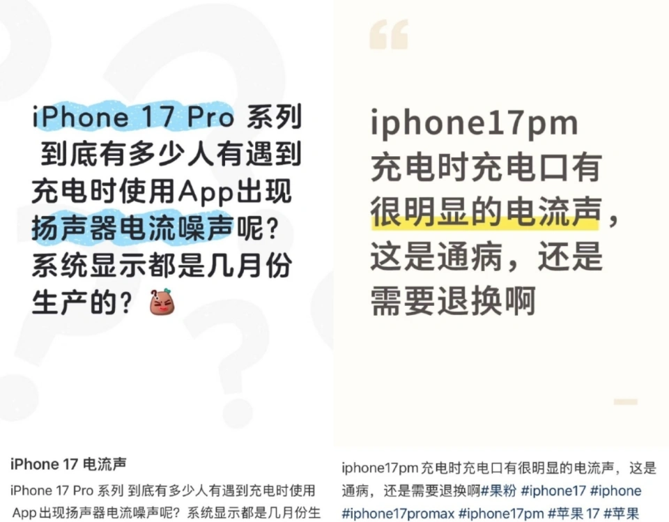 前阵子刚因为系统 bug、半夜自动通话等问题被讨论,这没几天,iPhone 17 Pro 和 Pro Max 又登上热搜,原因是充电的时候居然会发出嘶嘶声。
