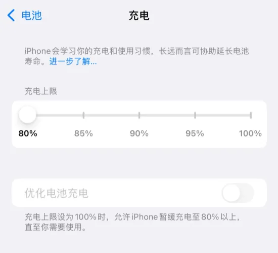 苹果也给出了个临时缓解办法,就是调整充电上限。打开手机设置,找到电池,再点充电,把充电上限调到 80%-85% 或者 95% 就行。不少用户试了说有用,应该是减少了涓流充电的环节,噪音就小了。