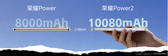 这款手机最大的亮点,其实在发布会前已经公布,就是目前行业最大的——10080mAh第四代青海湖电池,比上一代荣耀Power的电池增加了2080mAh。再直接点说,荣耀Power2仅增加的电池容量,就接近苹果超薄手机iPhone Air的电池容量。