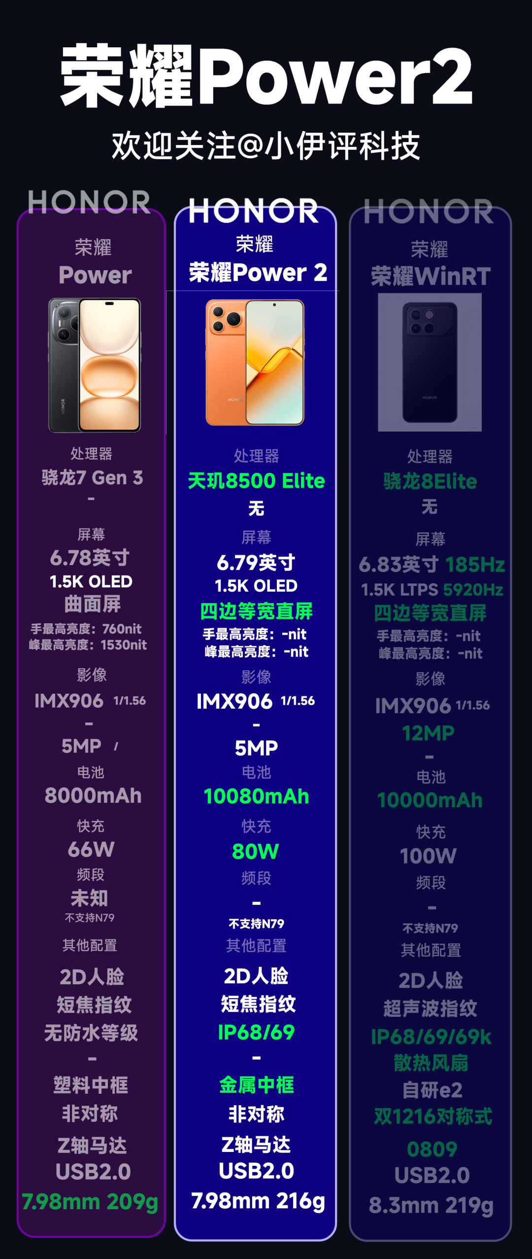再来看看售价,荣耀Power2砍掉了8+256GB版本,12GB +256GB版本售价2699元、12GB+512GB版本售价2999元,均比上一代同版本涨价了500元。