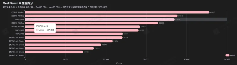 GPU 相对来说提升较大,根据 hubweb 提供的数据,A19 的 GB6 跑分是37014,A18 的 GB6 跑分是28101。