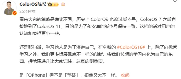 OPPO陈希回应ColorOS改版本号:是OPhone但不是苹替