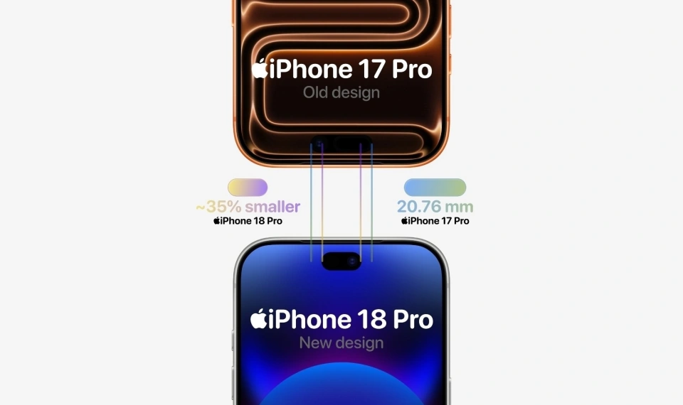 传闻 iPhone 18 Pro 灵动岛宽度缩窄约 35%