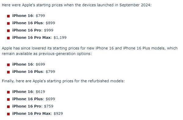 苹果发布官方翻新版iPhone 16系列 价格最高下调22%