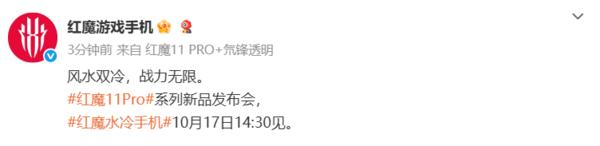 【CNMO科技消息】9月28日,CNMO注意到,红魔游戏手机官方宣布,红魔11 Pro系列将于10月17日14:30正式发布。官方此前透露,新机将搭载第五代骁龙8至尊版移动平台。