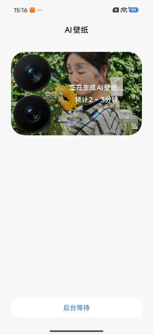 其次,你可以将自己的照片或宠物的照片生成不同风格的AI壁纸,预计需要等待2~3分钟的时间,你便可以得到一张独属于你的动态壁纸,将其显示于背屏,情绪价值直接拉满。
