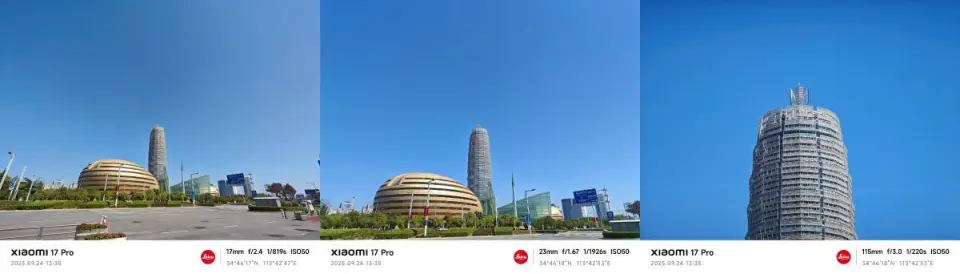 下面这组样张主要测试的是小米17 Pro后置三摄的色彩是否统一。分别使用0.7x,1x和5x原生焦段,在同一位置,同一角度,拍摄同一物体。