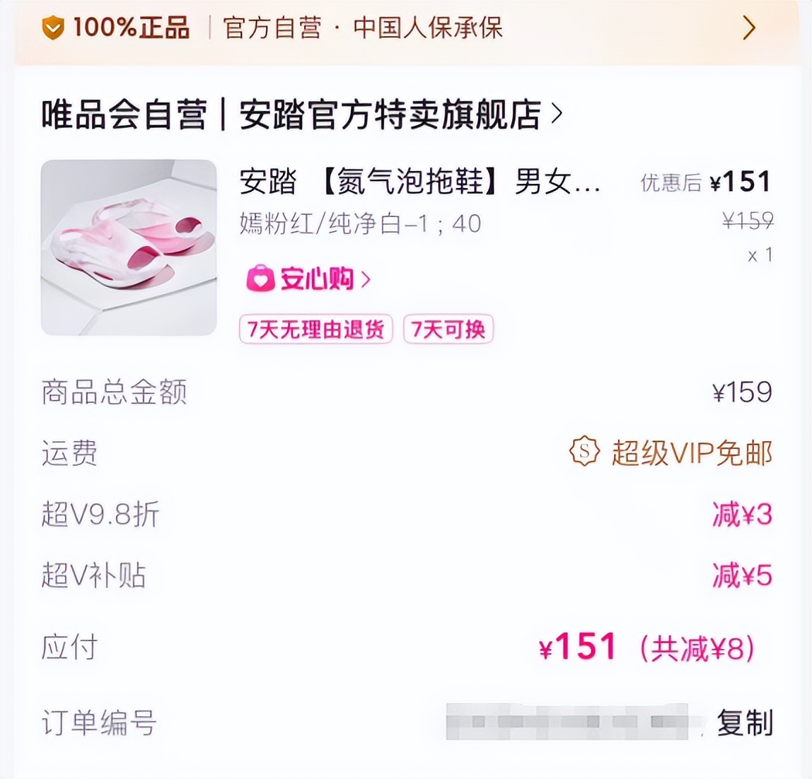 当然除了好体验,选择在唯品会还是因为价格的真香暴击。“C37+”原价469,结果超级vip价格直接砍到246元,几乎是半价就买到了手。还有氮气泡拖鞋,一双更是仅151元,比其他平台都便宜一截。