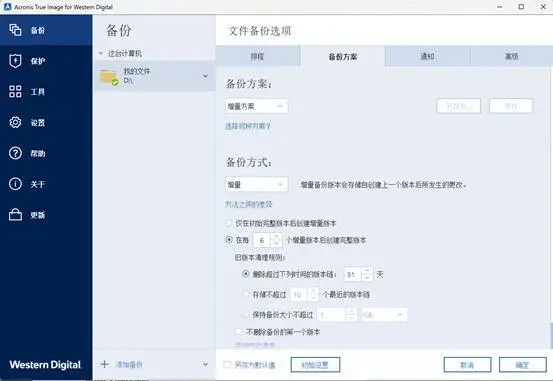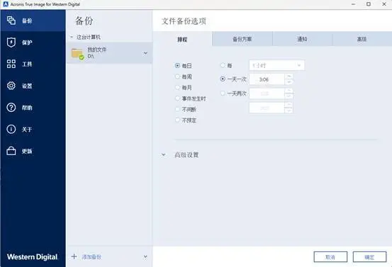 西数My Book™台式硬盘随附的Acronis True Image for Western Digital软件为用户提供了强大的数据备份功能。用户可以通过该软件制定个性化的备份计划,设置备份的时间、日期和频率,从而实现自动备份。这一功能特别适合家庭用户,尤其是那些对数据安全不太熟悉的用户。通过自动备份,用户无需手动操作,就能确保家庭照片、视频和其他重要文件的安全存储,避免因意外丢失或损坏而导致的不可挽回的损失。