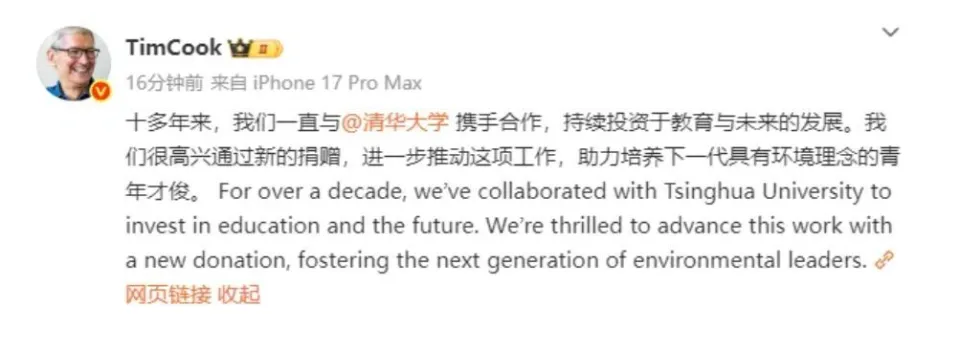苹果官网确认,起售价7999元!还宣布向清华大学提供新一笔捐赠!到访中国首日,库克现身LABUBU上海展 |